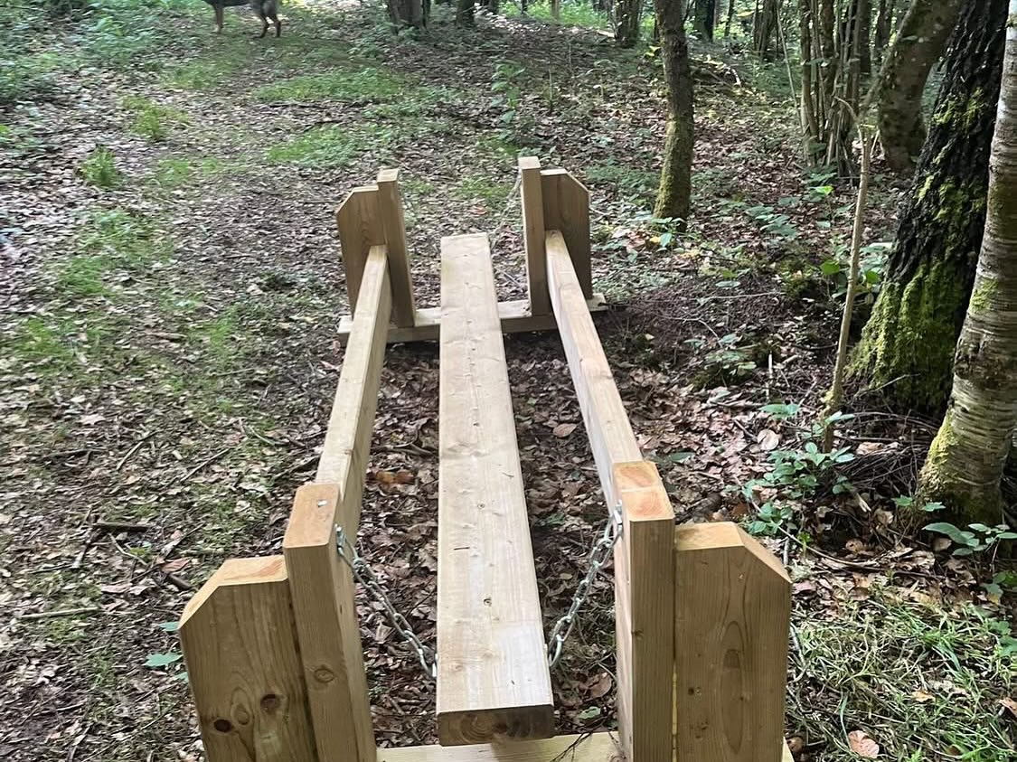 Parc jeux/agrès pour profiter d’un moment avec son ou ses loulous ! Entièrement clôturé à 2m de haut pour pouvoir les lâcher en toute sécurité sur plus de 1 hectare et renforcer votre lien en lui proposant de découvrir les agrès en bois
